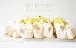 BEZOWY TORT PIÑA COLADA 276cienko pokrojonymi plasterkami świeżego ananasa, które wcześniej macerowały się w limonkowo-cukrowym syropie. Prosty krem łatwo się przygotowuje a w połączeniu z kwaskowatym ananasem świetnie przełamuje słodycz bezy. Tort jest dobrze wyważony w smaku, nie za słodki, lekko kwaśny. Pięknie się prezentuje. Blat bezowy można upiec wcześniej i 2-3 dni trzymać na blacie w kuchni. Ananasy wykładamy(...)Wrzucamy białka, dodajemy szczyptę soli i ubijamy na lekko sztywną pianę. Stopniowo, cały czas miksując, łyżka po łyżce dosypujemy cukier. Kolejną porcję dodajemy, gdy poprzednia dokładnie połączy się z masą (!). Po ostatniej porcji cukru ubijamy jeszcze 2 minuty, aby ustabilizować pianę. Dobrze ubita piana powinna być błyszcząca, gęsta, bez wyczuwalnych ziarenek cukru (można rozetrzeć odrobinę między palcami). Na koniec dodajemy