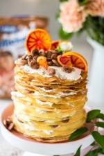Torcik naleśnikowy, z twarożkiem i płatkami zbożowymi Lubella Mlekołaki Choco Piegołaki 184zasługują na wszystko co najlepsze. W najbliższy weekend jest ich Święto – Dzień Babci i Dziadka, więc zaprośmy ich na śniadanie i przywitajmy po królewsku :) Co powiecie na śniadaniowy tort? Z naleśników pachnących pomarańczami, naturalnego, kremowego twarożku i smakowitych zbożowych płatków Lubella Mlekołaki Choco Piegołaki. Nie wiem jak Wy, ale ja myślę, że będą zachwyceni i docenią(...)oleju rzepakowego nadzienie: 800 g kremowego naturalnego twarożku 150 g płatków Lubella Mlekołaki Choco Piegołaki czerwona pomarańcza Mąkę łączymy z jajami, sokiem pomarańczowym i wodą gazowaną. Miksujemy na gładką masę, po czym dolewamy olej i mieszamy. Na nieprzywieralnej patelni, lekko natłuszczonej olejem, smażymy naleśniki (20 sztuk o średnicy około 12 cm). Na każdym z nich rozsmarowujemy twarożek i układamy warstwę