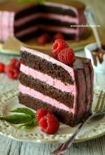 Tort czekoladowo - malinowy 1272krem jest z tych, które nie oddają swojej wilgoci do ciasta ). Frużelinę malinową jak i samo ciasto najlepiej przygotować dzień wcześniej, znacznie skróci to czas pracy przy torcie. Tort jest nie za słodki, wspaniale komponują się w nim smaki czekolady i malin. Posiada jeszcze jedną ogromną zaletę - świetnie się kroi, na równiutkie, eleganckie kawałki :). Skusicie się? ;). Ciasto czekoladowe(...)oprószyć mąką. Mąkę pszenną, proszek do pieczenia oraz sodę oczyszczoną przesiać i wymieszać. W garnuszku roztopić masło, dodać połamaną czekoladę i wymieszać do rozpuszczenia czekolady i otrzymania gładkiej masy czekoladowej. Odstawić do wystudzenia. Kakao przesiać do miseczki, dodać śmietanę oraz mleko i wymieszać rózgą kuchenną na gładką, bezgrudkową masę. Jajka ( w całości ) ubić z cukrem na jasną i bardzo puszystą