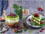 Tort "Leśny mech" / "Forest moss" cake 693obręcz. Nie natłuszczaj papieru i brzegów tortownicy. Piekarnik rozgrzej do 180°C. Całe jajka wbij do misy miksera. dosyp cukier i cukier waniliowy. Miksuj na najwyższych obrotach 6 minut, masa stanie się jasna i puszysta. Do ubitych jaj wlej szpinak i dodaj skórkę z cytryny. Krótko zmiksuj. Dodaj w dwóch partiach wcześniej przesiane przez sito i wymieszane z proszkiem(...)dłuższy niż 1 minuta, inaczej może się zważyć. Połowę kremu wyłóż na dolny blat, powciskaj w krem sporą garść malin. Przykryj krem drugim blatem ciasta, dociśnij. Wierzch i brzegi tortu posmaruj drugą połową kremu. Udekoruj wcześniej przygotowanymi okruchami ciasta oraz pozostałymi owocami. Wstaw do lodówki na 8-10 godzin. Ingredients: (on a cake tin having a diameter
