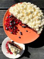 Tort makowy z malinami 213Klasyczny biszkopt z dużą ilością maku,przełożony kremem patissiere(po naszemu budyniem 😜) i kremem z ricottą na bazie białej czekolady i kremówki.Pyszny,niesłodki i sycący