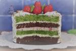 Biszkopt miętowy 202biszkoptem czekoladowym. Przepis znajdziesz tutaj . Do tego śmietanowa masa truskawkowa (z truskawek liofilizowanych, ponieważ akurat takie miałam pod ręką) i masa na bazie śmietanki z delikatną nutką cytryny. Tort otynkowany masą maślaną na bezie szwajcarskiej . Ozdoby wykonane z bezy szwajcarskiej . Pycha… Ja wymieszałam szpinak z miętą. Możesz wykonać ten biszkopt przy użyciu wyłącznie liści mięty. Do wymieszania mięty