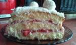 Tort Rafaello z truskawkami 649koleżanki Małgosi. Tort Raffaello z truskawkami rozpływa się w ustach. Puszysty, orzeźwiający, ze świeżymi truskawkami. Takim tortem możemy zaskoczyć nawet największych smakoszy. Polecam! Składniki: Biszkopt: 7 jajek 1 szklanka mąki pszennej 0,25 szklanki mąki ziemniaczanej 1 szklanka cukru Masa Raffaello: 1 puszka mleka kokosowego (400 ml) 75 g wiórków kokosowych 0,5 szklanki cukru pudru 750 g serka mascarpone(...)Gotujemy ją. Po zagotowaniu dodajemy pokrojone truskawki. Studzimy. Biszkopt skrapiamy likierem kokosowym, nakładamy frużelinę truskawkową i masę kokosową. Tak robimy również z drugim biszkoptem. Nakładamy trzeci biszkopt. Cały tort smarujemy masą kokosową, posypujemy wiórkami kokosowymi i ozdabiamy kulkami Raffaello i truskawkami. Smacznego