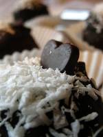Bajaderka I 256roku chciałam spróbować swoich sił w roladzie, ale niestety biszkopt mi się połamał i ostatecznie skończyło się na upieczeniu następnego i złożeniu go w tort (nota bene tort banoffe, który na pewno jeszcze upiekę, żeby pokazać na blogu). Pierwszy połamany biszkopt zatem został, do tego lekko skrojona skórka z wierzchu drugiego biszkopta i troszkę połamanego piernika. Co z tym zrobić(...)szkl. rodzynek 0,5 szkl. orzechów laskowych 100g gorzkiej czekolady wiórki kokosowe, orzechy, kolorowa posypka Biszkopt rozdrobnić w palcach na drobne okruszki, dodać mleko, masło, nutellę i rum, zagnieść. Masa powinna być lepka na tyle, by kawałek po ściśnięciu się nie rozpadał. Na koniec dosypać bakalie. Z masy bajaderkowej ulepić kulki, mnie wyszło ich ok. 15 sztuk, były nieduże