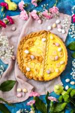 Krucha tarta z ricottą i czekoladą 165Jeśli tak jak ja, nie przepadacie za mazurkami, możecie przygotować na Wielkanoc prostą tartę z kruchego ciasta, z ricotą i czekoladą. Można ozdobić ją wg uznania