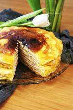 Pomarańczowy torcik z naleśników 241Naleśniki to je dno z moich ulubionych śnia dań. Najczęściej robię je właśnie z na dzieniem serowym tak, aby można je o dsmażyć następnego dnia na