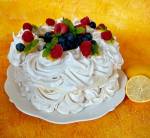 Torcik bezowy z kremem cytrynowym i owocami 154Torcik bezowy z kremem cytrynowym i owocami Pyszny i efektowny torcik. Wcale nie jest taki trudny w wykonaniu, jak by się mogło wydawać, a w smaku