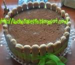 Tort tiramisu 271powtórzyć wszystkie czynności.Po położeniu ostatniego krążka całość należy docisnąć, by nieco masy wydostało się na zewnątrz, następnie pokryć wierzch oraz boki ostatnią porcją masy. Gotowy tort obłożyć biszkoptami (jeśli są zbyt długie, należy je przyciąć). Udekorować kakao . Schłodzić w lodówce. W przypadku braku tortownicy o 2 cm większej można przykleić