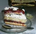 Tort wiśniowy z masą mascarpone, wiśniami, delicjami i galaretką 447Ulubione połączenie smakowe mojego męża. Mimo, iż z zasady nie jada on ciast (nawet nie próbuje) to tego torcika zjadł (nie wyliczając mu oczywiście!) w sumie