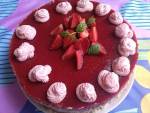 Tort śmietanowo - truskawkowy. 232możliwości zrobić tego bez formy. Ciasto nieco przewyższa tortownice, więc ja obręcz tortownicy umocowałm na górnym brzegu dolnego biszkoptu i układałam kolejne warstwy. Nastepnego dnia tort dekorujemy zostawioną masą i świeżymi truskawkami. Boki obsypać pokruszonymi płatkami migdałowymi. Smacznego