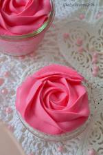 Tort śmietankowy z malinami Shimmer i Shine 163krem maślany zrobiłam właśnie w tych kolorach. Dodatkowo boki obsypałam jadalnym brokatem, który bohaterki bajki wprost uwielbiają. Biszkopty przełożone zostały masą z serka mascarpone i śmietanki 36%, a w środek dodatkowo włożyłam maliny w galaretce. Może tort nie jest idealny pod względem wyglądu (córcia tak bardzo chciała patrzeć jak go ozdabiam, aż w niego wpadła i był niestety troszkę krzywy(...)temperaturze pokojowej zmiksować, aż masło zrobi się puszyste, następnie do masła dodać sok z cytryny i partiami cukier puder, aż uzyskamy gęstą gładka masę. 2/3 masy wykorzystać do otynkowania boków i góry tortu. Pozostały krem maślany podzielić na pół. Do jednej części dodać barwnik błękitny, a do drugiej różowy. Oba kremy przełożyć do osobnych foliowych rękawów. Różowy i niebieski krem