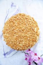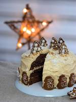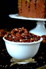 Świąteczny tort piernikowy z kremem krówkowym 287dodatkiem owoców czarnej porzeczki macerowanych w alkoholu (w wersji dla dorosłych) , które zostały po wyrobie Crème de cassis , oraz prosty krem mascarpone z masą krówkową. Znakomitą dekoracji tortu są świąteczne pierniczki , które upiekliśmy dzień wcześniej. Pierniczki użyte do dekoracji jak i sam tort ozdobiliśmy naturalnymi posypkami Decorada Delecta. Czas przygotowania: Składniki: Ciasto piernikowe(...)puszystą masę, stopniowo dodaj serek, ekstrakt wanilii i masę krówkową nie przerywając miksowania. Odstaw do lodówki. Konfiturę wymieszaj z owocami czarnej porzeczki. Każdy kawałek ciasta podziel na 3 krążki (usuń jeden wypukły wierzch), połóż je jeden na drugim przekładając na przemian konfiturą i kremem. Pozostały krem rozsmaruj na torcie, udekoruj pierniczkami, płatkami i wiórkami kokosowymi oraz posypką karmelową. Wstaw