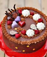 Tort z pianką malinową 144się Walentynki, z pewnością ukochana osoba będzie mile zaskoczona taką słodką niespodzianką. Smacznego! Print Tort z pianką malinową .wprm-recipe-rating .wprm-rating-star.wprm-rating-star-full svg * { fill: #343434; } Wspaniały tort przygotowany na bazie biszkoptu kakaowego przełożony lekką pianką malinową. Course Desery Cuisine Polska Keyword czekolada, maliny Prep Time 1 hour Cook Time 40 minutes Total Time 1 hour(...)wierzch udekorowałam "pudrem" z malin liofilizowanych lub możecie użyć kolorowych cukierków lub wiórków z czekolady. Tort przed podaniem schładzamy w lodówce. Smacznego ! Notes Jeśli boicie się, że masa rozleje się podczas wykańczania tortu, to można tort przygotować w tortownicy. W tym celu należy jedną część biszkoptu włożyć na dno formy, zapiąć obręcz a następni już w formie nałożyć krem