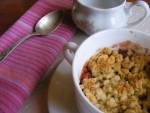 Jeżyny i jabłka pod kruszonką według Sophie Dahl 229świątecznym - środowym obiedzie przyszła pora na deser... I tu w ruch poszły moje ukochane jeżyny. Przepis dodaję do akcji: ale oczywiście nie będzie brany pod uwagę w konkursie :) Na pięć porcji użyłam: 1 szklankę mąki; pół szklanki "domowego" musli (płatki owsiane, kukurydziane, rodzynki, migdały itp...); 100 g masła + 1 łyżka na owoce; 1/4 szklanki brązowego cukru + 2 łyżki do posypania