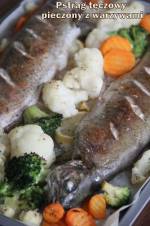 Pstrąg tęczowy pieczony z warzywami 237Pstrąg pieczony z warzywami to pomysł na szybki, lekki i bardzo smaczny obiad. Takie danie możecie podać na świąteczny lub rodzinny obiad. Wystarczy rybę przyprawić, dodać warzywa i całość upiec w piekarniku. Przepis podpatrzyłam na Kwestii Smaku i uwierzcie mi – danie wyszło rewelacyjne. Aby posiłek był jeszcze bardziej syty, upieczone pstrągi podałam z domowymi frytkami. Pycha :) Składniki