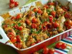 Pieczone podudzia z cieciorką i pomidorami koktajlowymi 554przykrycia. Piec przez ok 1,5godz. Kontrolując czy pomidorki za bardzo nie będą się przypiekać. Gotowe danie posypać posiekanym, świeżym szczypiorkiem. Smacznego :) Kategoria: A-Z WYTRAWNIE , Mięsa , Obiad Świąteczny , Zapiekanki Tagged: cieciorka , kurczak , pomidory , szczypiorek