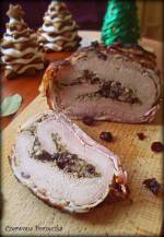 Świąteczna pieczeń schabowa 353Szukasz pomysłu na świąteczny obiad? Mam coś dla Ciebie ;)Pyszna rolada schabowa z nadzieniem z suszonych grzybów i żurawiny, o niepowtarzalnym smaku.Dzięki temu, że mięso jest zawinięte w boczek nie wysycha i jest bardzo soczyste. Do tego sos z grzybową nutą oraz z dodatkiem wędzonej śliwki- MNIAM! :)A zapach podczas pieczenia, po prostu bomba !:)Mięso warto upiec dzień wcześniej