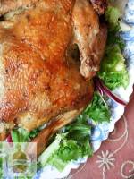 Pieczony kurczak w miodzie i rozmarynie 353połączenie marynaty. Kurczak wg tego przepisu jest już niestety wspomnieniem, królował na naszym świątecznym stole obok kurczaka pieczonego z papryką i majerankiem, ale pokazuję go z myślą o kolejnych świątecznym obiadach, na których będzie podawane mięso. Pieczony kurczak to niby trywialne, proste i mało świąteczne danie. Niektórzy uważają, że na świątecznym stole powinno królować coś bardziej wykwintnego np. jakaś pieczona