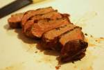 Polędwica wieprzowa w miodzie 276jest po prostu niebiańska . Delikatna i soczysta . Oczywiście jej soczystość w dużej mierze zależy od czasu pieczenia i z tym nie należy przesadzić bo szkoda mięska . Polecam , szczególnie na świąteczny obiad Składniki : 1 polędwica wieprzowa ( około 600 g ) 2 łyżki miodu kilka gałązek rozmarynu olej jeden ząbek czosnku pieprz cytrynowy około 1/2 łyżeczki sól do smaku sos : wywar po pieczeniu