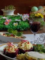 Wielkanocny obiad 249Soczysty, aromatyczny schab otulony ziemniaczaną koszulką / zobacz / z surówką selerową podaną w połówkach ugotowanych buraczków /z obacz / to moj a pyszna propozycja na świąteczny obiad. Wesołych Świąt
