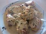 Medaliony w sosie serowym z zielonym pieprzem. 454Polędwiczka to bardzo delikatne i chude mięso- można ją przyrządzać na wiele sposobów. Dziś przygotowuję ją w boczku lub szynce szwardzwalskiej w serowym sosie z zielonym
