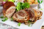 Rolada schabowa z białą kiełbasą 200świąteczny wielkanocny obiad proponuję tę pyszną i aromatyczną roladę. Plastry boczku nadają jej soczystości. Rolada świetnie smakuje na ciepło, jako dodatek do obiadu, jak również na zimno jako mięsna przystawka. 1kg schabu 2 cienkie białe parzone kiełbaski kilka plastrów parzonego boczku łyżka musztardy op. przyprawy do mięsa wieprzowego pieprz Schab umyć, osuszyć i rozciąć na duży płat. Mięso rozbić