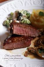 Stek z polędwicy wołowej z pieczarkami i sosem z sera z niebieską pleśnią 273unikałam jak ognia. Ale zachęcona sukcesami smakowymi potraw z przepisów samego Gordona Ramsay’a postanowiłam i tutaj się przełamać. I nie żałuję! Jak zwykle wszystko wyszło wyśmienite. Obiad iście świąteczny, więc polecam na nadchodzące Święta Bożego Narodzenia. Jeszcze kwestia wysmażenia steków. Kogokolwiek nie pytam, każdy z bliskich mi osób mówi, że woli wysmażone (pomimo, że nie jadł(...)pieczarkami, którego smak całkowicie odbiega od znanych mi sosów… No danie zdecydowanie do powtórki! A, że akurat zakupiliśmy cały kilogram polędwicy, więc na drugi dzień powtórka z obiadu, na którą już się nie mogę doczekać :) Składniki: (4-5 porcji) 4-5 steków z polędwicy wołowej (u mnie po ok. 120 g każdy i 2 cm grubości) 1 łyżka masła