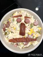 Kuchnia Pani Wiosnymakaronu w kształcie ryżu 200 g żółtego sera 1 średniej wielkości czerwona papryka 300 g kabanosów 120 g ogórków konserwowych puszka kukurydzy konserwowej 2 ząbki czosnku 3 łyżki majonezu 6 łyżek jogurtu naturalnego sól, pieprz szczypta chilli (adsbygoogle = window.adsbygoogle || []).push({}); Przygotowanie: Makaron gotujemy zgodnie z instrukcja na opakowaniu Żółty ser ścieramy na tarce. Kukurydze osączamy z zalewy. Ogórki konserwowe, oraz paprykę kroimy w kosteczkę. Czosnek przeciskamy przez praskę. Kabanosy kroimy w krążki. Wszystkie składniki umieszczamy w misce i mieszamy. Doprawiamy solą, pieprzem oraz chilli do smaku. (adsbygoogle = window.adsbygoogle || []).push({}); (adsbygoogle = window.adsbygoogle || []).push({}); Artykuł Sałatka z Makaronem Ryżowym i Kabanosem pochodzi z serwisu Przepiski.pl