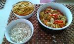 Curry z kurczakiem i batatami 296kilka dni. Niezwykle proste, nieco egzotyczne i bardzo pyszne danie . Bataty osobiście uwielbiam, jest to niezwykłe połączenie ziemniaka i marchewki J Choć są dość trudno dostępne w polskich sklepach warto się rozejrzeć i skosztować. Curry z kurczakiem i batatami Składniki: 2 piersi z kurczaka ½ małej papryki zielonej 1 średnia marchewka 200-300 g batatów (użyłam 2 sztuki