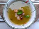 Zupa krem z pomidorów z parmezanem i pesto 241Podczas mojej niedawnej wizyty w Polsce, miałam okazję wybrać się z mężem, moim kuzynem Bartkiem i jego żoną Zuzią, do przytulnej knajpki na warszawskich Szczęśliwicach. Wspominam to popołudnie, gdyż właśnie tego dnia po raz pierwszy skosztowałam fantastycznej zupy pomidorowej, która swym smakiem, w wyrafinowany sposób pobudziła moje kubki smakowe.Do tej pory zupa pomidorowa, nie kojarzyła mi się z jakimiś