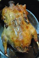 Pieczona kaczka faszerowana wątróbką 211Przepis na polskiego, nadziewanego kurczaka to kurczak z wątróbkami. Ale jeszcze lepiej smakuje tak przygotowana kaczka :) Była u mnie w drugi dzień świąt :)Składniki na farsz:0,5 kg kurzych wątróbek1 jajko2 łyżki masła1 łyżka bułki tartejpęczek natki pietruszkisól, pieprzSkładniki na pieczoną kaczkę:1 cała kaczka2 ząbki czosnku2 łyżki suszonego majeranku1 łyżka