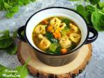 ZUPA Z TORTELLINI I SZPINAKIEM 226Prosta zupa z warzywami oraz makaronem tortellini z nadzieniem serowym. Znajdziemy w niej marchewkę, pietruszkę, selera naciowego, zielony groszek oraz świeże liście szpinaku. Jest dość syta