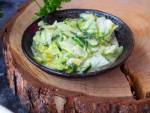 SURÓWKA Z SAŁATY I OGÓRKA 220Prosta, a zarazem bardzo smaczna surówka do obiadu... z sałaty lodowej i świeżych ogórków z dodatkiem szczypiorku oraz koperku, przygotowana na bazie kefiru ze śmietaną. Surówka