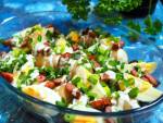 SAŁATKA WIEJSKA Z SOSEM CHRZANOWYM 233Sałatka wiejska z ziemniaczkami gotowanymi w łupinach, jajkami na twardo oraz podsmażaną kiełbasą, podana z sosem chrzanowym na bazie jogurtu greckiego oraz majonezu. Typowo polskie smaki