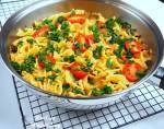 TAGLIATELLE Z ŁOSOSIEM I SZPINAKIEM 219Uwielbiam wszelkiego rodzaju dania z makaronem, a to jest jedno z moich ulubionych! Makaron tagliatelle z łososiem wędzonym na gorąco, pomidorkami koktajlowymi oraz świeżymi liśćmi szpinaku