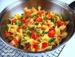 TAGLIATELLE Z SZYNKĄ I POMIDORAMI 221Tagliatelle z szynką szwarcwaldzką oraz pomidorami suszonymi i pomidorkami koktajlowymi to kolejne, szybkie danie makaronowe, które zalicza się do moich ulubionych. Składa się z kilku składników