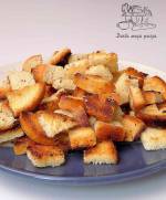 Jak zrobić grzanki czosnkowe? 665Jak zrobić chrupiące grzanki czosnkowe do zupy, gulaszu sałatki lub sosu? Prosty przepis na aromatyczne grzanki czosnkowe z patelni, idealny dodatek do