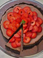 Keto ciasto z musem czekoladowym i truskawkami (Paleo, LowCarb, Vegan) 304Keto ciasto z musem czekoladowym i truskawkową rozetą Czekolada i truskawki dla taty Było keto ciasto na Dzień Mamy , nie mogło go więc też zabraknąć takowego