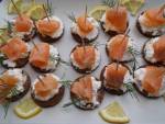 Poniedziałkowy "fit" - przekąski z łososiem 633mną zgodzicie, że jest to zdrowa i smaczna przekąska. Poza tym ja mam takie wrażeniem, że ciągle jemy za mało ryb, więc przemycam je czasami w przekąskach lub sałatkach. Takie koreczki polecam na imprezki, nie tylko piątkowe... Przekąski z łososiem SKŁADNIKI: 150 g łososia wędzonego w plastrach opakowanie okrągłych mini krążków chlebowych kilkanaście cebulek perłowych serek chrzanowy gałązka koperku