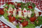 SAŁATKA Z KURCZAKIEM I GRANATEM 393wieczorne chwile przed tv dziś wcinam taką sałatke z kurczakiem. To bedzie moja kolacja, próbowaliście?Składniki:opakowanie miksu sałat z rukolą 30 dag piersi z kurczaka pól granata kilka pomidorków koktajlowych łyżka soku z cytryny 2 łyżki oliwy 1 łyżka mioduWykonanie:Piers kurczaka oprószamy solą i pieprzem , obsmażamy na rumiano na patelni. Gotowe kroimy w plastry. Na talerz wykładamy miks