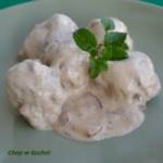 Klopsiki w sosie śmietanowym 141Klopsiki w sosie śmietanowym to obiad zainspirowany gotowym daniem, które można znaleźć na sklepowych półkach. Chociaż określenie “gotowe danie” to za dużo powiedziane, bo