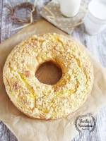 Drożdżowy wieniec z serem i kajmakiem 223palcach, do połączenia, nie zagniatamy. Wyrośnięte ciasto rozwałkowujemy na prostokąt o wym 15/40 cm smarujemy masą serową, zostawiając 2 cm wolne brzegi, robimy kleksy na masie serowej z kajmaku zawijamy jak roladę. Układamy w natłuszczonej i wysypanej bułką tartą formie z kominem. Posypujemy kruszonką . Pieczemy 30-35 minut na złocisty kolor w temp 170*c. Słodkich wypieków