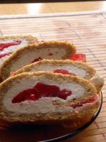 Dukanowa rolada 262ilość otrębów w całej roladzie na to nie pozwala, zjadłabym ją całą na raz ;)Galaretka:-1/2 szkl. soku z lidla.-2 szkl. wody-2 łyżki żelatynyŻelatynę rozpuszczamy w gorącej wodzie. Sok mieszamy z dwoma szklankami wody, a następnie dodajemy do tego żelatynę,mieszamy i wstawiamy do lodówki do stężenia.Masa serowa:-400g białego twarogu-150-200ml jogurtu(...)trzeba co jakiś czas patrzeć czy się już nie upiekł). Gorący biszkopt rolujmy w wilgotną ściereczkę i pozostawiamy do ostygnięcia. Następnie go rozwijamy i nakładamy masę serową i pokrojoną w kostkę galaretkę. Roladę zwijamy,zawijamy folią aluminiową i wkładamy ją do lodówki na jakąś godzinę. Smacznego