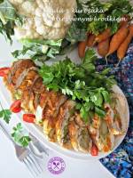 Rolada z kurczaka z serowo – warzywnym środkiem 259Bardzo zdrowa rolada z kurczaka z warzywno serowym nadzieniem. Jest idealna do obiadu na ciepło, jak i na zimno np. na kanapki. 500 g filetu z piersi kurczaka Przyprawa do kurczaka Słodka czerwona papryka Sól Pieprz 200 g mieszanki warzywnej (brokuł, kalafior, marchewka) 100 g żółtego sera Oliwa z oliwek Mieszankę warzywną gotujemy do miękkości w delikatnie osolonej wodzie, odcedzamy(...)połowę kurczaka. Na nim układamy warzywa i starty na tarce o średnich oczkach ser. Dociskamy do mięsa. Wierzch przykrywamy resztą mięsa, podwijając pod spód boki. Za pomocą folii formujemy roladę. Wierzch obsypujmy mocniej słodką czerwoną papryką, skrapiamy oliwą. Szczelnie owijamy folią i przekładamy do blaszki. Pieczemy w nagrzanym do 200*C piekarniku przez 50-60 minut. Pod koniec pieczenia