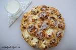 Serowe ślimaki z rodzynkami 300rozsmarowaniu nadzienia, tak aby były rozmieszczone równomiernie. Stolnice lekko posypujemy mąką i rozwałkowujemy placek ok 0,5 cm , smarujemy połową masy serowej, posypujemy rodzynkami i zwijamy jak roladę. Tniemy na 3 cm kawałki i układamy w blaszce wyłożonej pergaminem, czynność powtarzamy z druga połową ciasta. Pieczemy w rozgrzanym piekarniku na 170 C przez