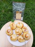Drożdżowe ślimaczki z serem i cynamonem 267gładką masę. Wykonanie drożdżówek: Ciasto drożdżowe rozwałkować na prostokąt. Na 3/4 części ciasta wyłożyć masę serową i ją rozsmarować. Ciasto złożyć na pół (tak aby przykryć ser) i zrolować. W między czasie przygotować blaszkę. Za pomocą ostrego nożna pokroić roladę w "plastry". Każdy z nich posmarować białkiem i pozostawić na blaszce do podwojenia objętości, każdą z drożdżówek posypać zmielonym