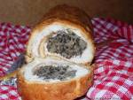 Rolada serowo-majonezowa z kurczakiem i pieczarkowym farszem. 511serem i przyprawiamy dokładnie mieszamy. 4. Blachę z piekarnika wykładamy papierem do pieczenia, który cienko smarujemy olejem.Najlepiej użyć w tym celu silikonowego pędzelka. Masę majonezowo - serową rozprowadzamy równomiernie cienką równą warstwą po papierze. Najlepiej rozprowadza się ją za pomosą silikonowej szpatułki, gdyż masa do niej nie przywiera i ładnie się rozprowadza . Piekarnik nagrzewamy do 175 stopni, wkładamy(...)pozostawiając ok 2 cm zapas od spodu. Filety mają do siebie przylegać i nie tworzyć przerw. Na końcu ciasta układamy farsz pieczarkowy w formie "wałka".Następnie zwijamy całość jak roladę zaczynając od końca z pieczarkami.Potem zawijamy roladę w papier do pieczenia i wstawiamy do piekarnika nagrzanego do 180 stopni, pieczemy 35 - 40 minut.Papier po końcowym upieczeniu rolady odrywamy wtedy kiedy