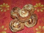 "Słodkie środy" - ślimak, ślimak pokaż rogi .... 243blendera przekładamy twaróg, wbijamy żółtko, dodajemy cukier waniliowy i cukier biały, całość dokładnie mieszamy do uzyskania jednolitej masy serowej. Ciasto francuskie rozkładamy, smarujemy całość uzyskaną masą serową i zwijamy w roladę, którą kroimy w krążki. Białko roztrzepujemy, każdy krążek smarujemy białkiem i oprószamy cynamonem. Pieczemy w nagrzanym do 220 stopni piekarniku przez 18-20 minut, ślimaczki pieczemy do ładnego zarumienienia