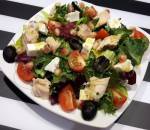SAŁATKA Z PIECZONYM PSTRĄGIEM ŁOSOSIOWYM 295Sałatka z pieczonym pstrągiem łososiowym oraz pomidorkami koktajlowymi, oliwkami czarnymi, serem feta i granatem. Ostatnią mam taką fazę na granaty, że dodaje je do każdej sałatki i nie tylko 😉 Sałatkę tę podałam trochę w inny sposób...bo w tortilli. Sałatka w tortilli to też fajny pomysł na przekąskę imprezową- super się prezentuje i możemy wykonać tyle porcji ile gości(...)koktajlowych ok. 10-12 szt. oliwek czarnych 1/2 granatu przyprawa do ryb sól, pieprz Sos: 2 łyżki oliwy 1 łyżka soku z cytryny 1 łyżeczka musztardy 1 łyżeczka miodu sól, pieprz Wykonanie: Pstrąga myjemy, osuszamy, przyprawiamy solą, pieprzem, przyprawą do ryb, zawijamy w folię aluminiową i wkładamy do piekarnika nagrzanego do temp. 180 stopni na 10 min. Po tym czasie