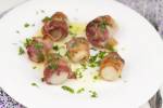 Przegrzebki w boczku 233Szkocja słynie z ryb i owoców morza, dlatego też tych składników nie mogło zabraknąć wśród moich przepisów. Dziś przygotowałam niezwykle proste i szybkie danie - przegrzebki w boczku . Małże św. Jakuba stanowią idealną przystawkę - chrupiący boczek idealnie komponuje się z delikatnymi i miękkimi przegrzebkami, polanymi maślano - cytrynowym sosem. Przegrzebki w boczku to po prostu Szkocja na talerzu - polecam! Przegrzebki(...)się cieńsze). Przegrzebki owijać boczkiem góra - dół, nie dookoła. Przegrzebki owinięte boczkiem ułożyć na ruszcie i wstawić pod grilla (opiekacz, górną grzałkę piekarnika) na kilka minut aż boczek się przyrumieni, a przegrzebki nie będą surowe. W połowie pieczenia przegrzebki obrócić. W międzyczasie na małej patelni roztopić masło i powoli smażyć, aby lekko zbrązowiało (trzeba jednak uważać aby się